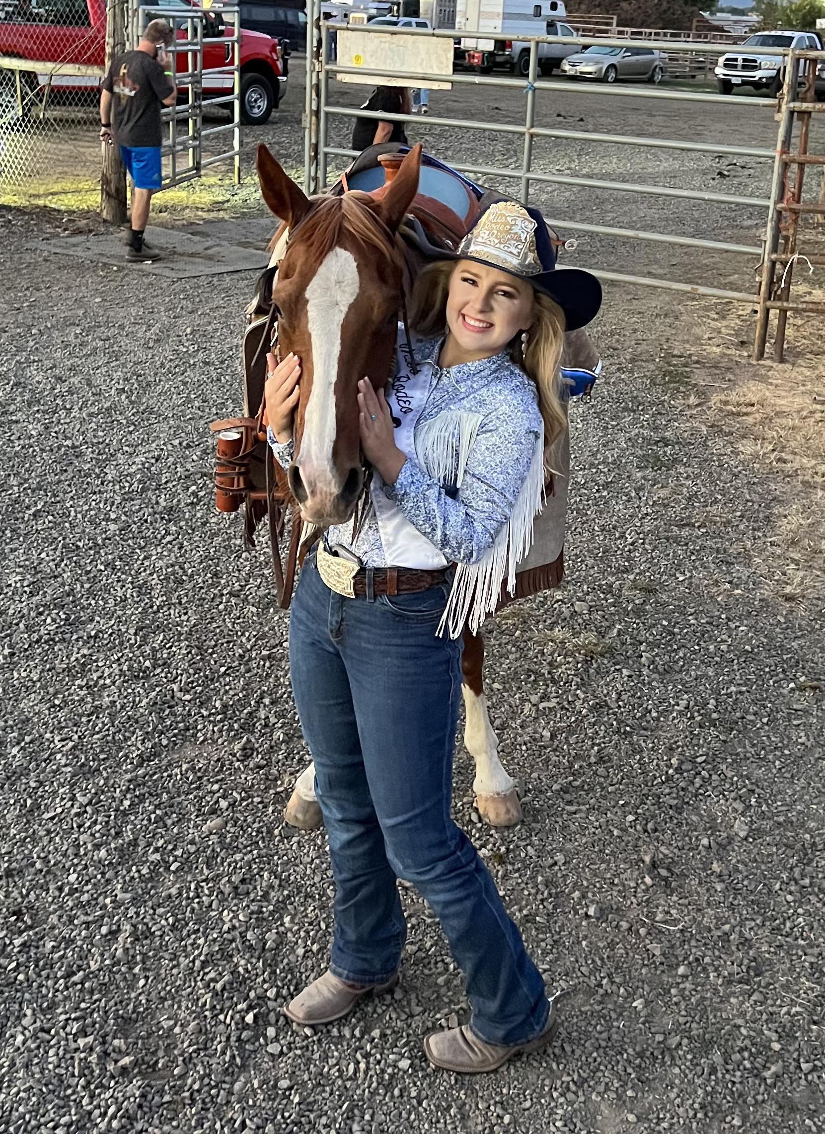 From Southern Oregon’s gateway to the lakes, Zoe Brooks is the 23-year-old daughter of Ryan Brooks. Zoe is in the middle sibling between two brothers. She is a student at Rogue Community College working towards a Nursing Degree. When Zoe is not on the rodeo road or at school, she can be found working in her local urgent care as a Certified Medical Assistant. Zoe enjoys spending time with her family, playing with her dog and trying out new recipes to bake. Zoe’s passion for family and rodeo is what drives her to be an advocate for the western industry.