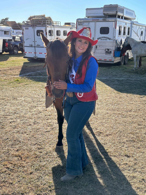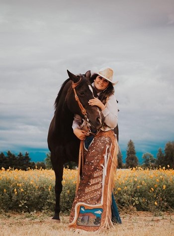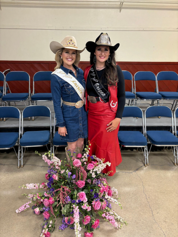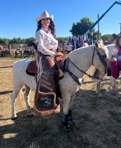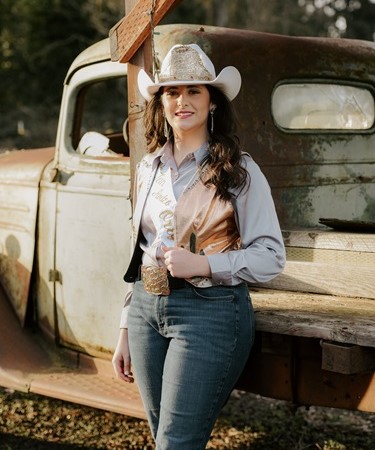 Hallie has always loved horses and the sport of rodeo; she has dreamed of being a rodeo queen since she was young, thanks to her aunt Amy Willams who was the 2008 Molalla Buckaroo Queen. Hallie competes at the Northwest Youth Rodeo Association where she does Barrel Racing and Pole Bending and where she also served as their 2023 Queen.